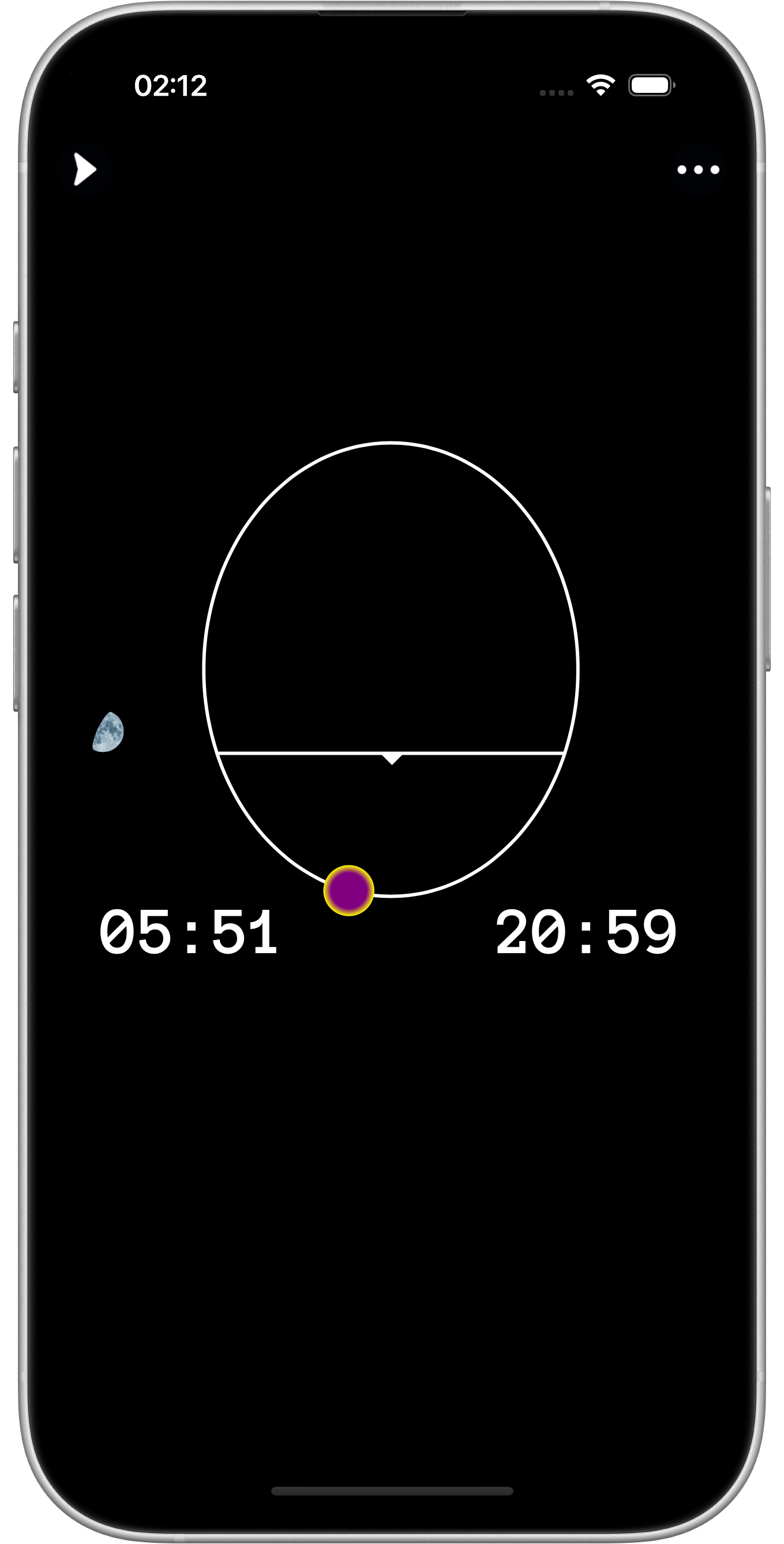 of clock time (-8:30 ≤ δt ≤ +1:10) and watch simulation time and δt flow, and the crescent (not the Moon)