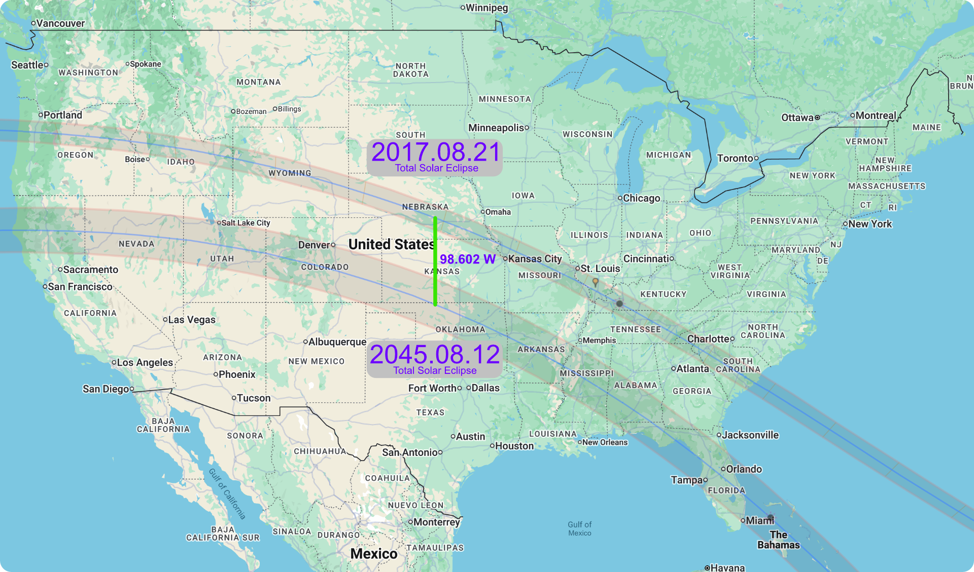 The 2017 Total Solar Eclipse traversed the entire country from northwest to southeast, and the 2045 eclipse will follow a similar path.