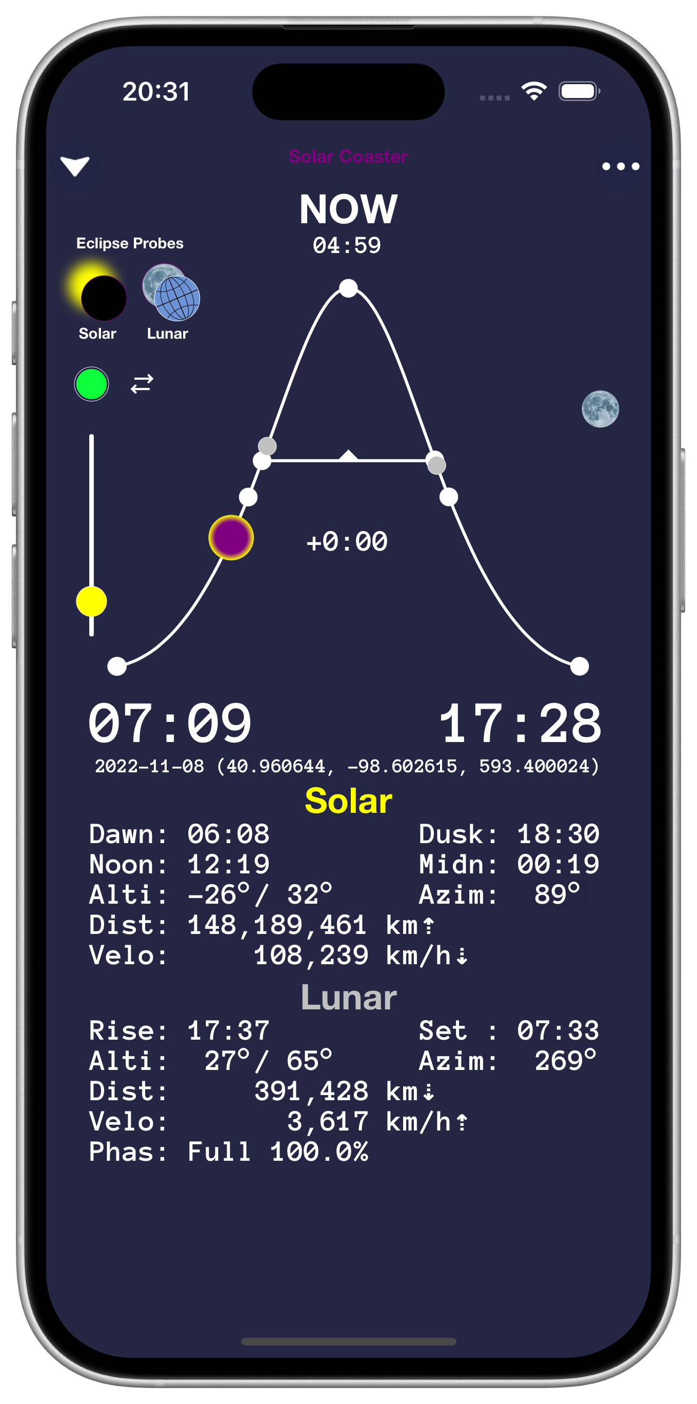 Solar Coaster provides accurate position, time, motion and eclipse information for Earth's