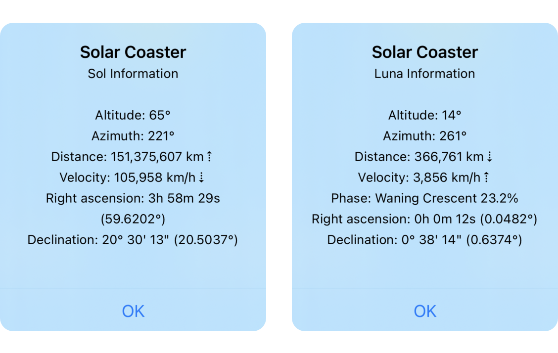 When Solar Coaster first runs, iOS and macOS ask for permission to access your current location