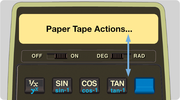 GO-21 provides you with six trigonometric functions. It also calculates angles in decimal degrees or radians. Use the slide switch to select DEG or RAD.