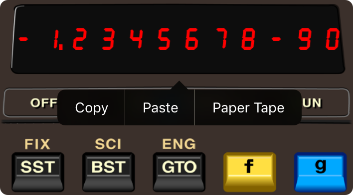 brings up the Copy / Paste / Paper Tape menu, allowing you to export the value of X, import a new value of X, or annotate the paper tape (Copy / Paste unavailable on Apple TV).