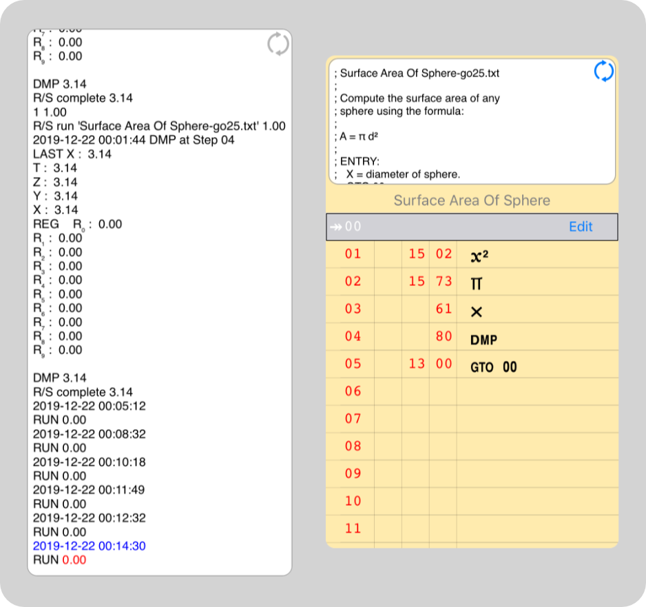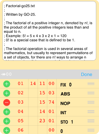 It's this mode that allows you to manually enter a program into the calculator, just like an authentic HP-25C.