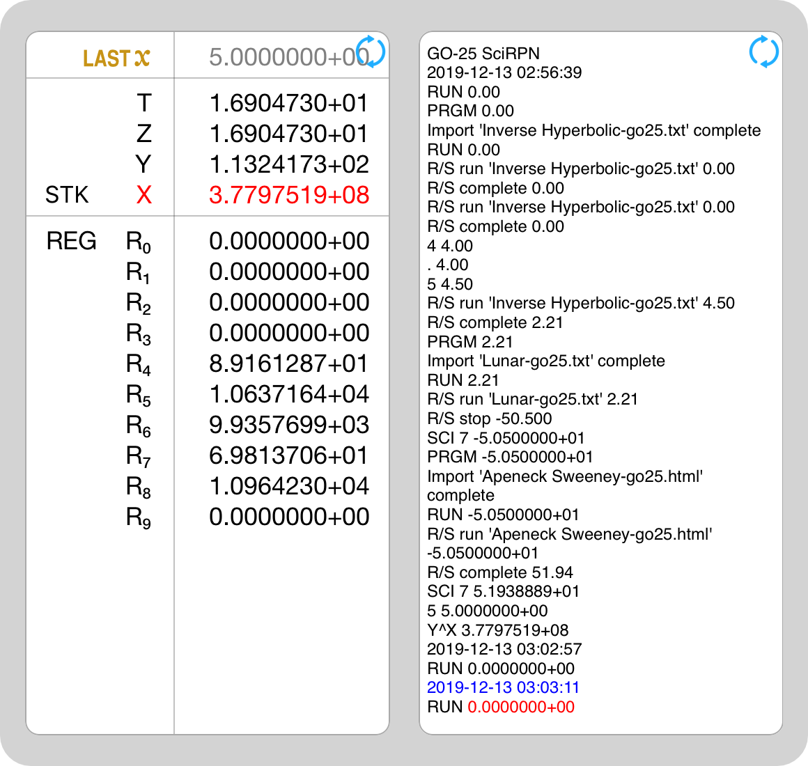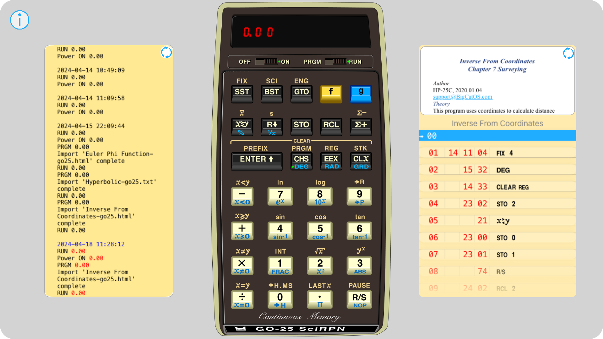 GO-25 SciRPN closely simulates the venerable HP-25C Programmable Pocket Scientific Calculator. The HP-25C was released in 1976 and sold for a MSRP of $195. Virtually indistinguishable from the real item in operation, GO-25 is a powerful yet simple retro calculator.