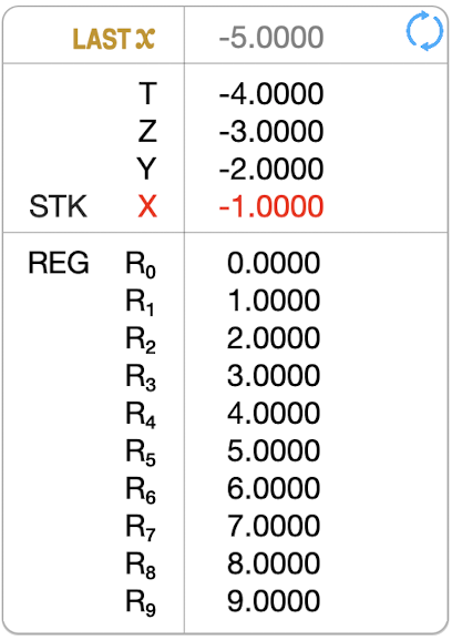 One-number functions such as m execute upon the number in the X-register only, and the answer writes over that number. No other stack registers are affected by executing a one-number function.